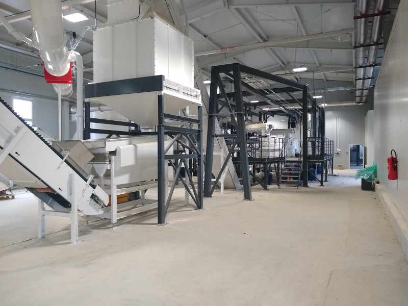 Obrat ima vgrajene dve peletirke, vsaka maksimalne zmogljivosti 3 tone peletov na uro